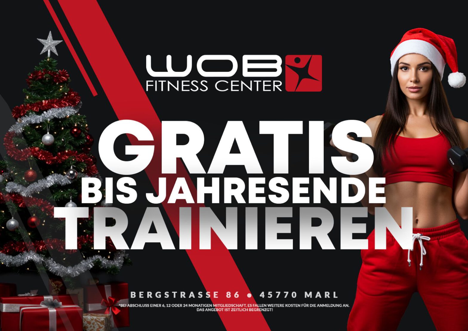Starte jetzt dein Training bei WOB Fitnesscenter Marl – trainiere gratis bis Jahresende! Dein modernes Fitnessstudio mit top Ausstattung, persönlicher Betreuung und familiärer Atmosphäre. Jetzt Angebot sichern!
